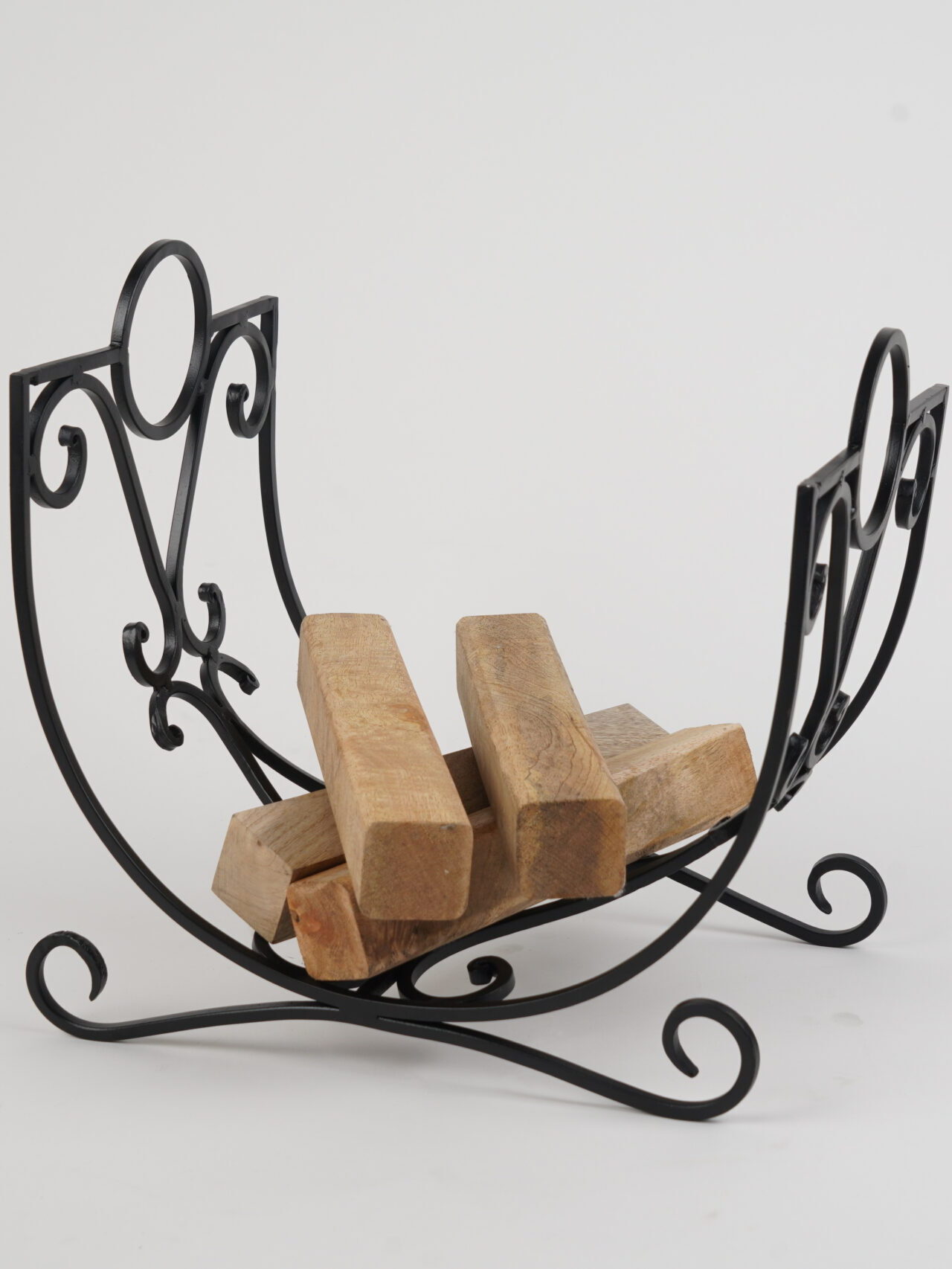 Forged Iron Blacksmith Log Holder: Introduce industrial chic to your fireplace with this forged iron blacksmith log holder. Its robust build and bold black finish make it a robust and stylish choice. This holder effortlessly accommodates firewood and brings a touch of rugged sophistication to your space.