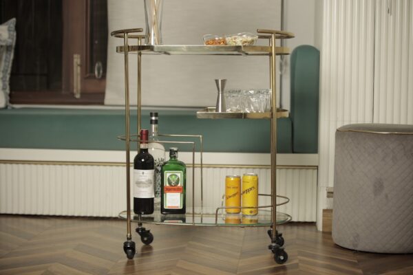 Bring the party to you with our elegant bar cart. Designed to hold your favorite drinks and barware, it adds a touch of sophistication while keeping everything at your fingertips.