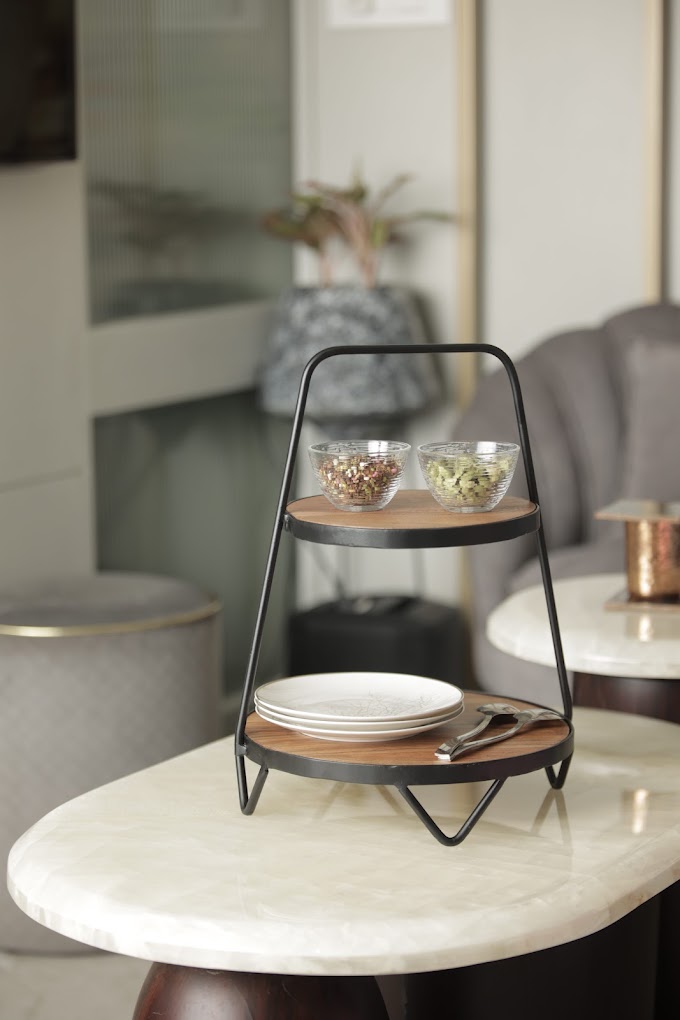 Double the tiers, double the charm! Our modern 2-tier serving stand lets you present your favorites beautifully. Whether it’s a tea party or a buffet, it’s the ideal choice for a polished presentation.